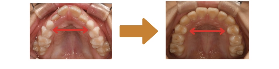 このような場合、専用の装置を使って上あごの成長を促し、自然な発育へとサポートしてあげることが大切です。